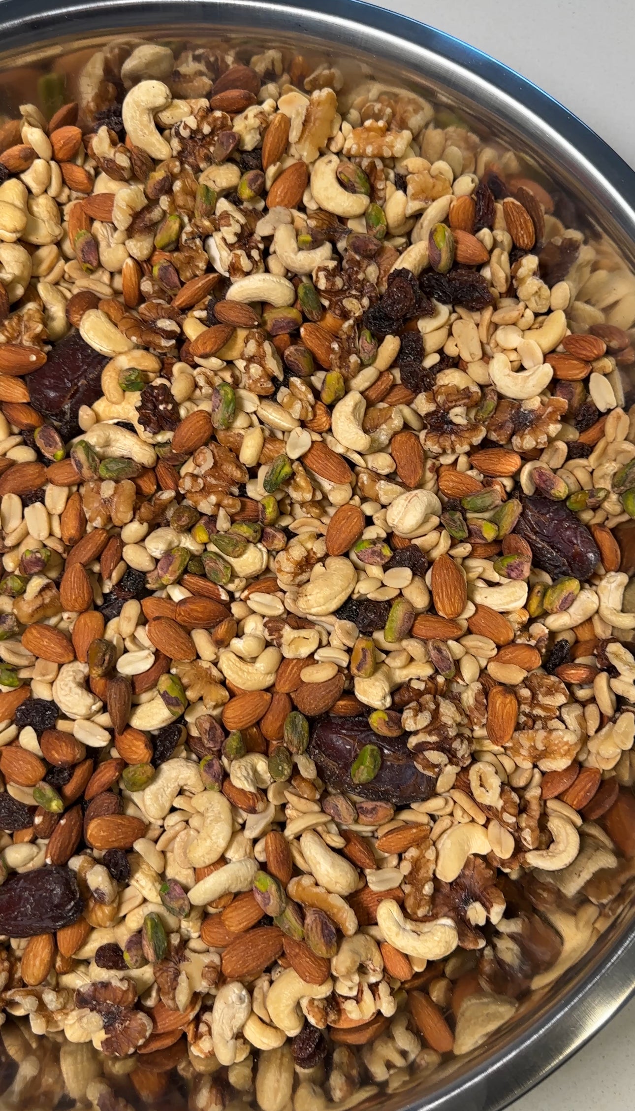 The mixture of nuts delivers a powerhouse of protein, healthy fats, and vital nutrients to boost energy and aid recovery. The nourishing blend of Pistachio (पिस्ता), Cashew (काजु), Walnut (अखर), Almond (बदाम), Peanut (मूँगफली), Shredded Coconut (नरिवल), Dates (खजूर), and Sultanas (किसमिस) in our products offers a wholesome boost of protein, healthy fats, and natural sweetness.